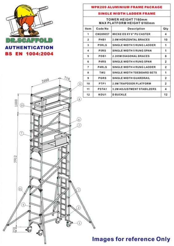 單寬鋁合金腳手架的寬度為0.75米,長度2.0米,整架最大承載量(包括自身重量)是1000kg,每張踏板的最大承載力為272kg,腳輪承載力為500kg,其腳部伸縮最高可調至40cm。